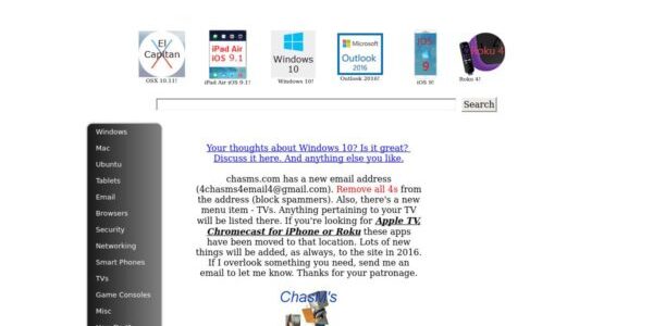 ChasM’s has been supplying the technical community with the latest screenshots (walkthroughs) of Internet applications and programs for over 15 years. These include Windows OS, Mac, email, browsers, security, spam, routers, modems, networking, games, etc.
